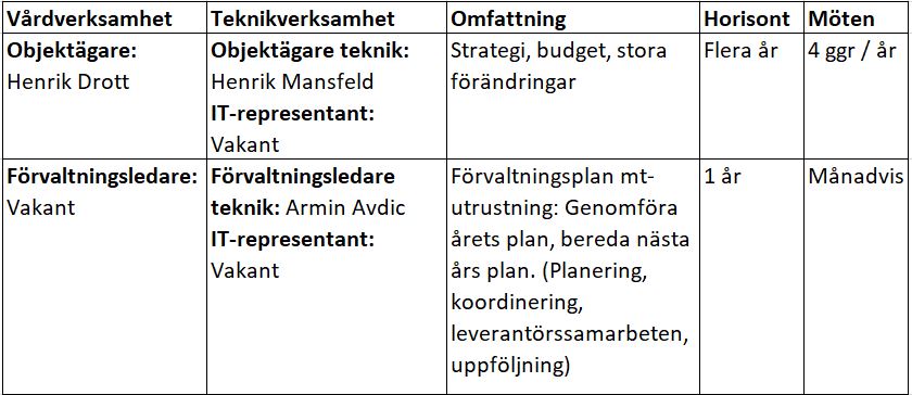Verksamheten kravställer vilken medicinsk teknik som behövs och Medicinsk Teknik: