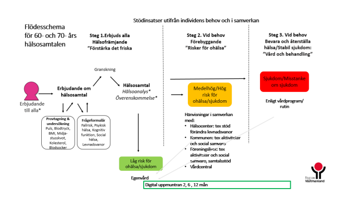 Under hösten 2025 börjar 8 stycken vårdcentraler i regionen att erbjuda hälsosamtal till personer födda 1956 och 1966. Från och med hösten 2026 kommer alla vårdcentraler att erbjuda hälsosamtal till personer födda 1956 och 1966.