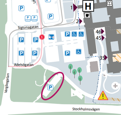 Läs mer om parkering på sjukhusområdet och karta över alla personalparkeringar