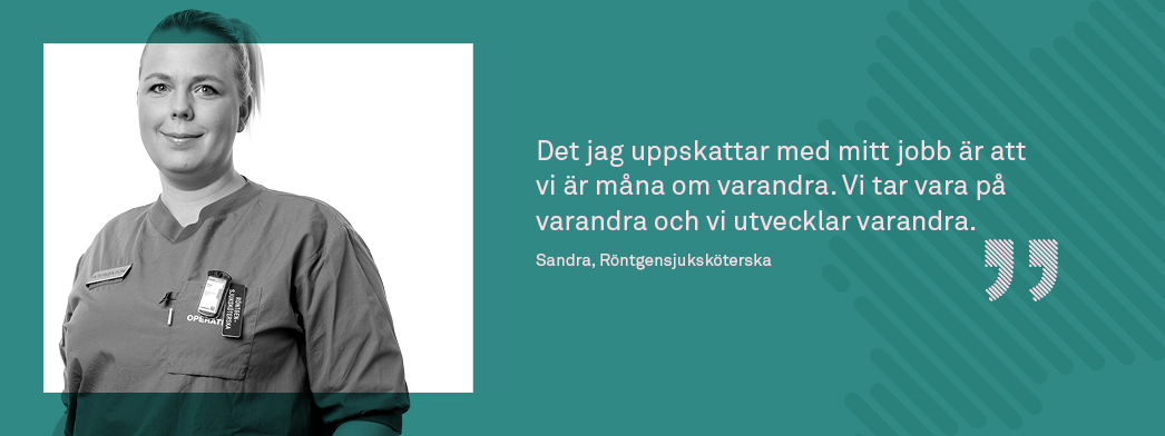 Hos oss finns goda möjligheter för dig att utvecklas i din profession utifrån dina önskemål och behov. Vill du bli bred i din kompetens finns möjlighet till rotation mellan olika modaliteter eller enheter på kliniken och vill du som erfaren röntgensjuksköterska bli specialiserad inom ett visst område vill vi försöka möta det i möjligaste mån. Är du intresserad av forskning så finns möjlighet att forska hos oss och vill du fördjupa dig inom handledning, kvalitetssäkring, patientsäkerhet, teknisk utveckling eller andra frågor är det något vi uppmuntrar. I vår nysatsning strävar vi efter att du som röntgensjuksköterska ska få utveckla din unika yrkeskompetens i ett stimulerande teamarbete med andra yrkesgrupper där alla har sin roll, och med väl fungerande stödresurser runt dig.