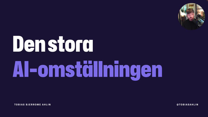 I sin föreläsning "Att överleva AI-omställningen" utforskar Tobias Ahlin Bjerrome de senaste framstegen inom AI, som ChatGPT, Stable Diffusion och andra generativa modeller. Han beskriver även hur vi kan förbereda oss för att möta de nya utmaningarna och hur vi kan se möjligheterna som AI erbjuder.